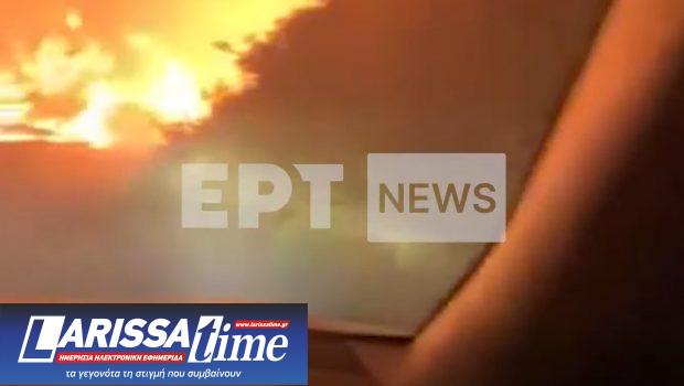 Όπως φαίνεται στο συγκλονιστικό βίντεο που τράβηξαν, άνδρες της ΟΠΚΕ και της Τροχαίας προλαβαίνουν και περνούν από το σημείο όπου ξεπροβάλλουν πύρινες φλόγες.