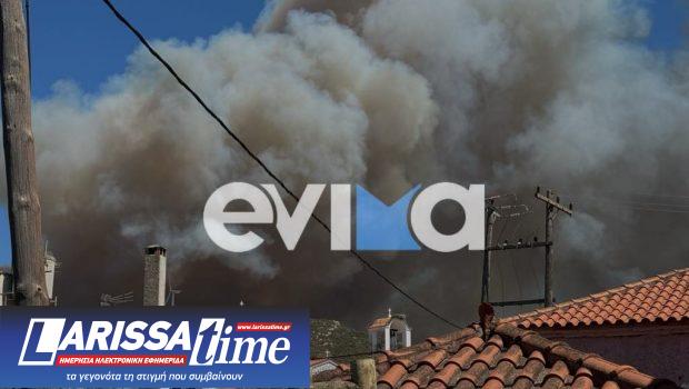 Μεγάλη φωτιά έχει ξεσπάσει ανάμεσα στα χωριά Πετριές και Κριέζα στην Εύβοια.