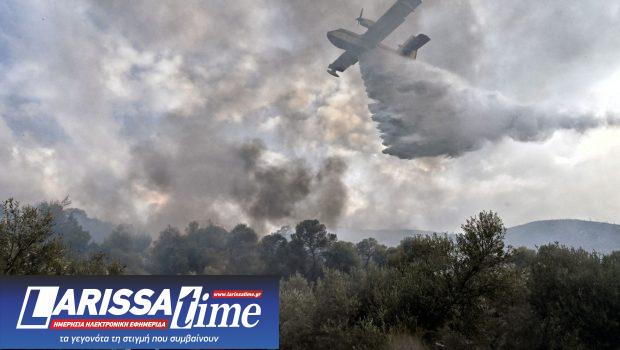 Φωτιά στο Μαρκόπουλο: Σηκώθηκαν δύο αεροσκάφη και ένα ελικόπτερο