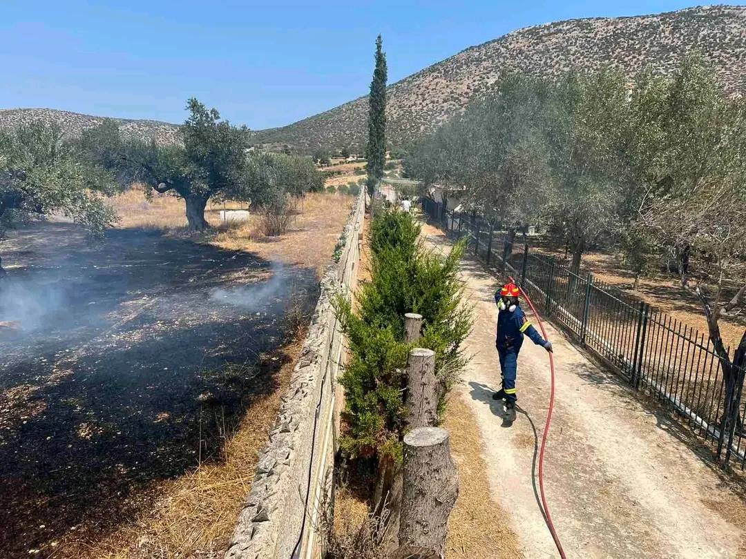Oι δύο πυρκαγιές απέχουν περίπου 700-800 μέτρα η μία από την άλλη και καίουν κυρίως ελιές. Όπως έγινε γνωστό από την Πυροσβεστική, κοντά υπάρχουν διάσπαρτες κατοικίες, χωρίς ωστόσο μέχρι στιγμής να απειλούνται.