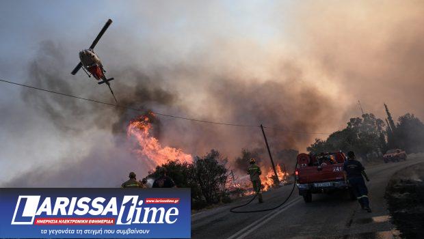 Παράλληλα από αέρος ενισχύθηκε η δύναμη κατάσβεσης με αποτέλεσμα σήμερα να επιχειρούν οκτώ αεροσκάφη και τρία ελικόπτερα.