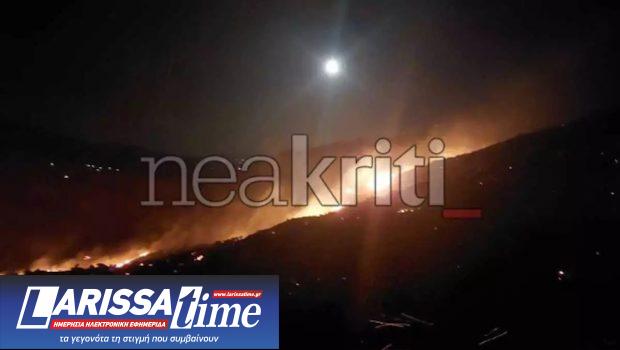 Ολονύχτια μάχη με τις φλόγες δίνουν οι πυροσβέστες για να σβήσουν τη φωτιά στο Ρέθυμνο. Η φωτιά ξέσπασε αργά το βράδυ της Τρίτης στον Άγιο Βασίλειο Ρεθύμνου και καίει αγροτολιβαδικές εκτάσεις, ενώ για την ώρα δεν απειλούνται οικισμοί. Αυτή την ώρα το μέτωπο της φωτιάς εκτείνεται από τα Ακούμια, την περιοχή Προδρόμου, την Κρύα Βρύση και έχει κατεύθυνση προς Τριόπετρα.