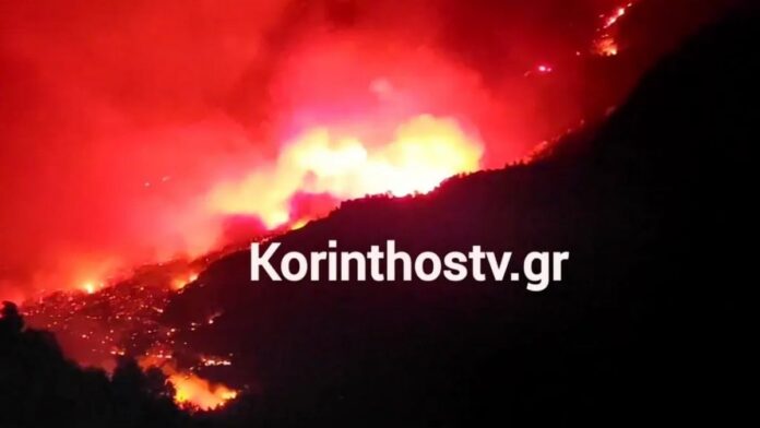 Συνεχίζονται τα 112 προς τους κατοίκους της Κορινθίας, αφού η φωτιά ξέσπασε το πρωί της Κυριακής 29 Σεπτεμβρίου μαίνεται ανεξέλεγκτη.