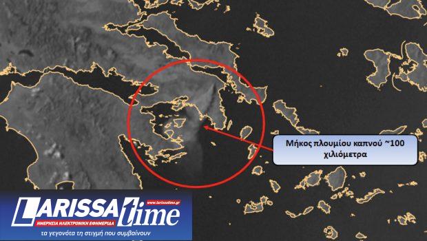 Όπως φαίνεται, με τη βοήθεια των ενισχυμένων βορειοανατολικών ανέμων, ο καπνός έως τις 18:00 ώρα Ελλάδος είχε ταξιδέψει περίπου 100 χιλιόμετρα.