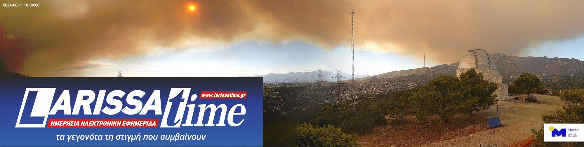 Εικόνα 2. Εικόνα του καπνού από την φωτιά στον Βαρνάβα Αττικής από τις κάμερες του Εθνικού Αστεροσκοπείου Αθηνών στην Πεντέλη στις 18:04 μ.μ. της Κυριακής 11/08/2024