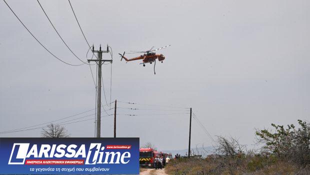 Για την κατάσβεσή της επιχειρούν 20 πυροσβέστες με 12 οχήματα και 3 ελικόπτερα ενώ συνδράμουν και υδροφόρες του δήμου.