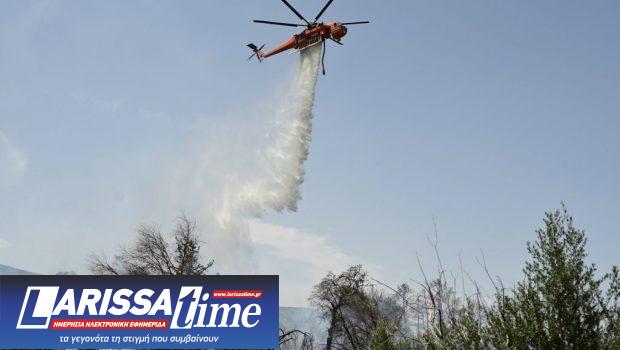 Επιχειρούν 32 πυροσβέστες με 1 ομάδα πεζοπόρου της 11ης ΕΜΟΔΕ με 10 οχήματα, 3 αεροπλάνα και 5 ελικόπτερα.