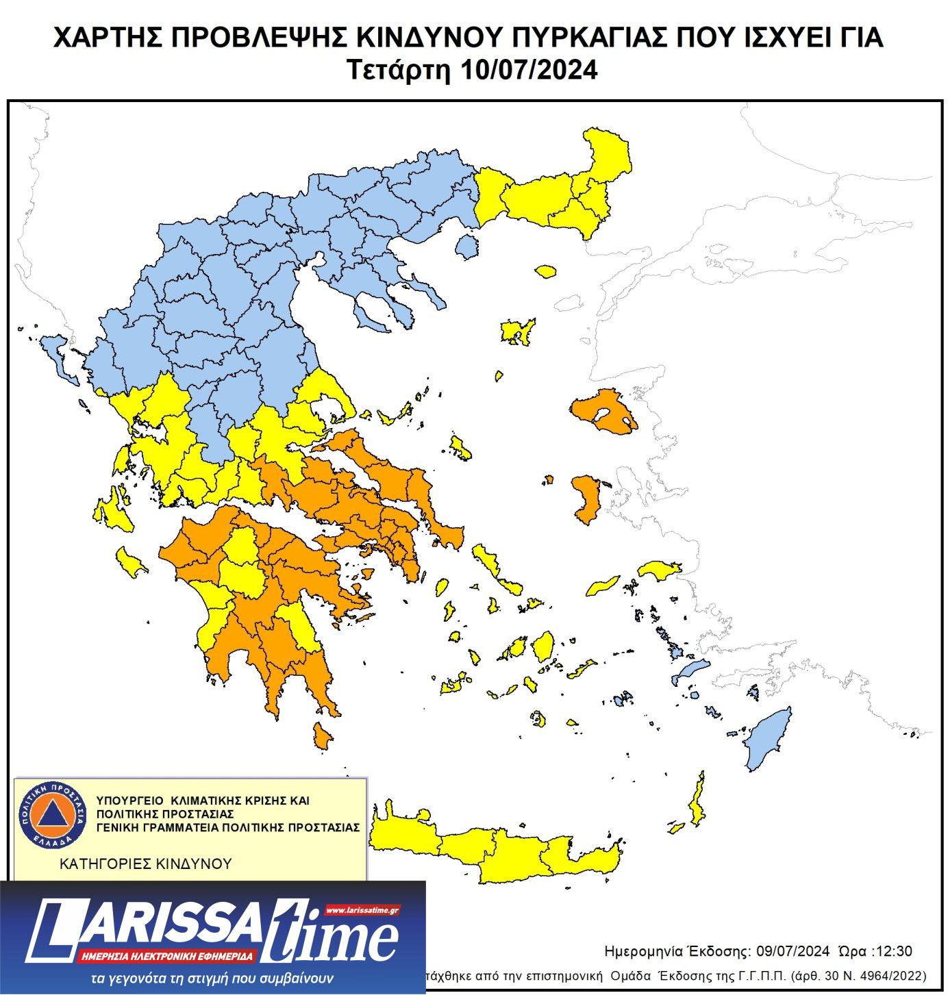 ⚠️ Χάρτης Πρόβλεψης Κινδύνου 🔥 για αύριο 10/7:
