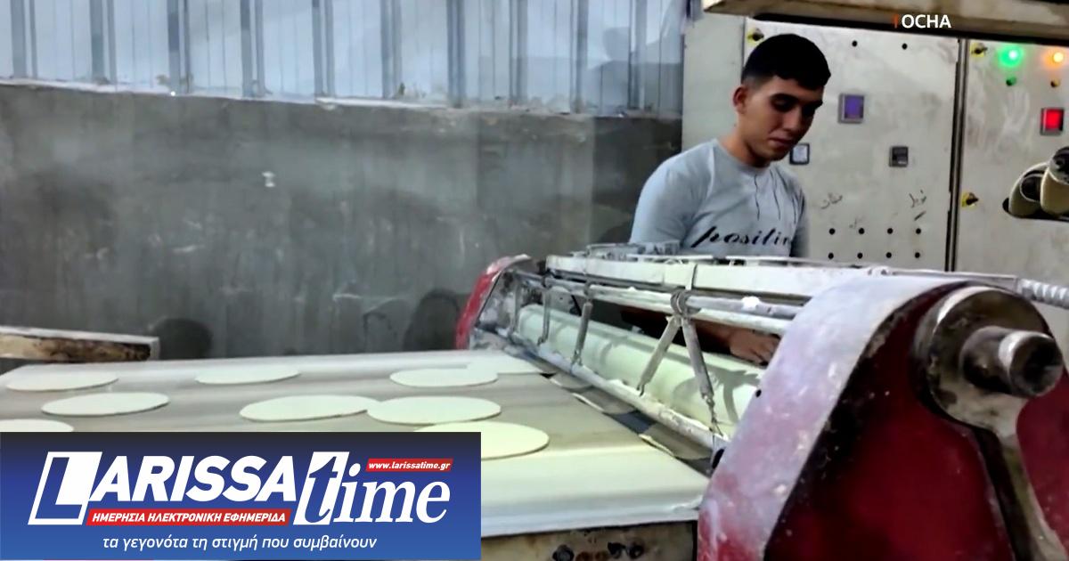 Τα πλάνα του βίντεο από το Γραφείο Συντονισμού Ανθρωπιστικών Υποθέσεων των Ηνωμένων Εθνών την Παρασκευή (17/10) έδειξαν μια σταθερή γραμμή παραγωγής πίτας στο αρτοποιείο του Παγκόσμιου Επισιτιστικού Προγράμματος.