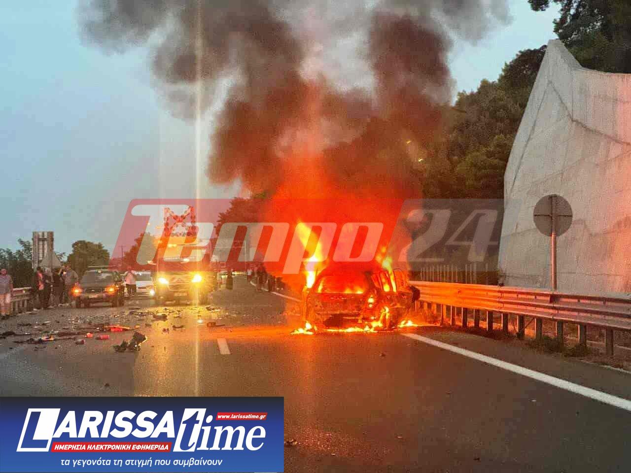 Σύμφωνα με το tempo24.news, δύο αυτοκίνητα, υπό συνθήκες που ερευνώνται, συγκρούστηκαν με αποτέλεσμα το ένα να τυλιχθεί στις φλόγες. Ο οδηγός δεν κατάφερε να βγει από φλεγόμενο όχημα και απανθρακώθηκε.