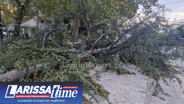 Πυροσβεστική και συνεργεία του Δήμου Λαμιέων βρίσκονται επί ποδός για να απομακρύνουν τα πεσμένα δέντρα και τα κλαδιά από τους δρόμους.
