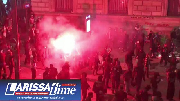 Very violent clashes erupt at Place de la République. Police charges east of the square as masked gangs provoke police. Street furniture on fire, fireworks, and projectiles thrown. #Paris #PlaceDeLaRepublique #Clashes #Police pic.twitter.com/VLU2AiRlHa
