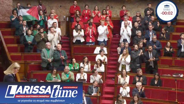 Τα αίματα άναψαν όταν η βουλευτής του κόμματος Ανυπόταχτη Γαλλία (ριζοσπαστική αριστερά), Ρασέλ Κεκέ, ύψωσε μια παλαιστινιακή σημαία μέσα στην αίθουσα. Η πρόεδρος του κοινοβουλίου Γιαέλ Μπρον-Πιβέ την ανακάλεσε αμέσως στην τάξη, επιβάλλοντάς της προφορική επίπληξη, τη μέγιστη κύρωση που προβλέπεται από τον κανονισμό. Αποφάσισε επίσης να διακόψει τη συνεδρίαση. Κάτι που συνέβη για δεύτερη φορά.