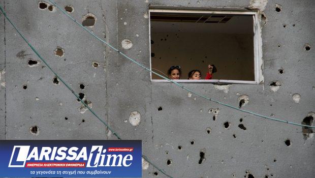 Παιδιά κοιτούν από ένα παράθυρο κατά τη διάρκεια του Eid al-Fitr, εν μέσω της συνεχιζόμενης σύγκρουσης μεταξύ του Ισραήλ και της παλαιστινιακής ισλαμιστικής οργάνωσης Χαμάς, στην πόλη της Γάζας 11 Απριλίου 2024.