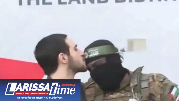 Οι όμηροι κρατούσαν πιστοποιητικά απελευθέρωσης, με έναν από αυτούς, ο οποίος ταυτοποιήθηκε ως ο Όμερ Σεβ Τοβ, να φιλά στο μέτωπο μαχητές της Χαμάς ενώ χαιρετούσε στη σκηνή.