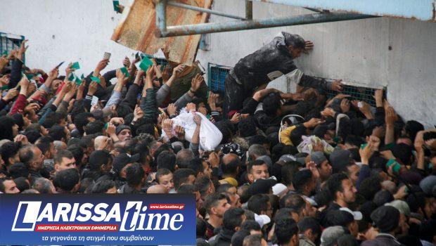 Παλαιστίνιοι συγκεντρώνονται για να παραλάβουν βοήθεια έξω από μια αποθήκη της UNRWA στην πόλη της Γάζας