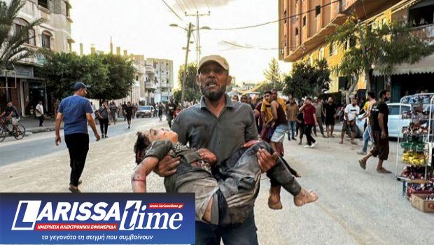 «Τι απέγινε η στοιχειώδης ανθρωπιά μας;» διερωτήθηκε χθες Πέμπτη μια αξιωματούχος του ΟΗΕ απευθυνόμενη στα μέλη του Συμβουλίου Ασφαλείας, περιγράφοντας τα δεινά των κατοίκων της Γάζας που έχουν ξεπεράσει αυτό που θα μπορούσε «να υπομείνει οποιοδήποτε ανθρώπινο ον» (στη φωτογραφία του Reuters/Khames Reefi, επάνω, άνδρας μεταφέρει το άψυχο σώμα παιδιού που σκοτώθηκε από τους ισραηλινούς βομβαρδισμούς στον προσφυγικό καταυλισμό της Νουσεϊράτ, στην κεντρική Λωρίδα της Γάζας).
