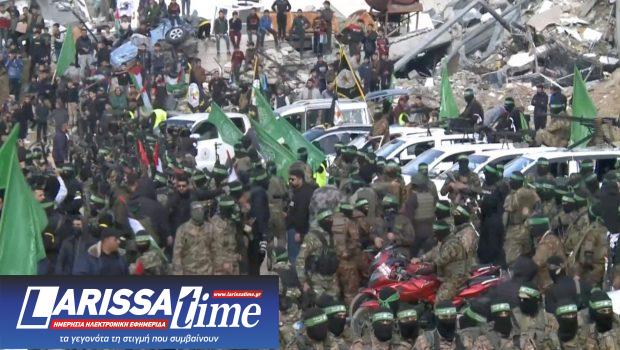 Μαχητές της Χαμάς και άλλων παλαιστινιακών οργανώσεων, όπως της Παλαιστινιακής Ισλαμικής Τζιχάντ, έχουν συγκεντρωθεί στην πλατεία Παλαιστίνης στη Γάζα εν όψει της διαδικασίας απελευθέρωσης των τεσσάρων γυναικών ομήρων.