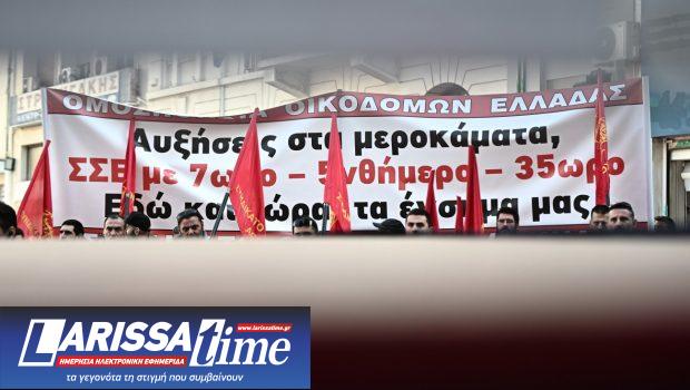 Οι οικοδόμοι διεκδικούν, σύμφωνα με την ανακοίνωσή τους, «υπογραφή συλλογικής σύμβασης εργασίας για όλους τους οικοδόμους, κατώτερο μεροκάματο εργάτη 54 ευρώ – βοηθού 57 ευρώ – τεχνίτη 60 ευρώ, 7ωρο – 5νθήμερο – 35ωρο, υπογραφή κλαδικών συμβάσεων στα συναφή επαγγέλματα, αναγνώριση και διανομή των «υπέρ αγνώστων» ενσήμων για όλους τους οικοδόμους, κάθε μέρα δουλειάς και ένσημο, μέτρα για την υγεία και ασφάλεια στους χώρους δουλειάς, προστασία από τις ανατιμήσεις, κατάργηση του ΦΠΑ στα είδη πλατιάς λαϊκής κατανάλωσης, σε ρεύμα, νερό, τηλέφωνο».