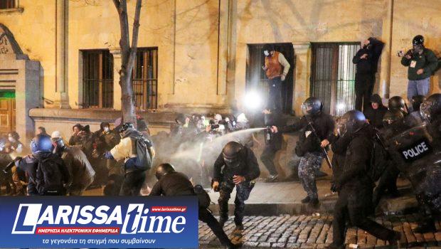 Εικόνα από τις συγκρούσεις διαδηλωτών και αστυνομίας στην Τυφλίδα