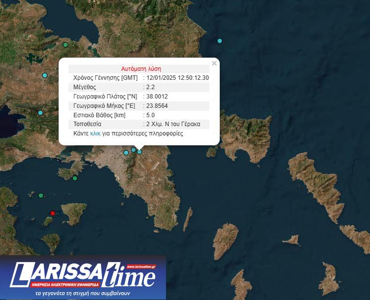 Νέος σεισμός σημειώθηκε στην Αττική, το μεσημέρι της Κυριακής 12 Ιανουαρίου με επίκεντρο τον Γέρακα.