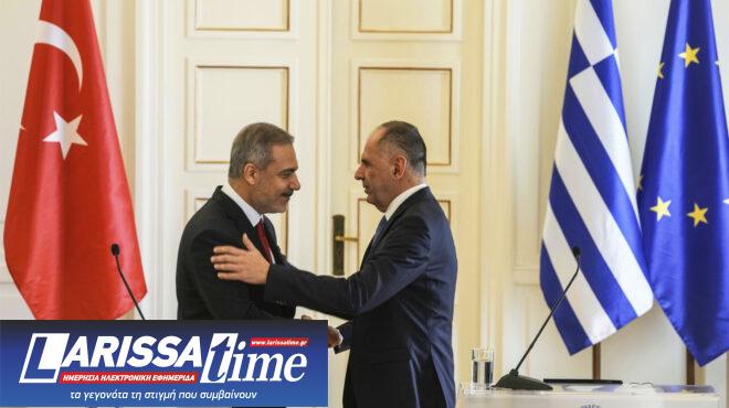 Το μεσημέρι της περασμένης Παρασκευής οι υπουργοί Εξωτερικών Ελλάδας και Τουρκίας Γιώργος Γεραπετρίτης και Χακάν Φιντάν, κλείστηκαν στο γραφείο του νεοκλασικού κτιρίου της οδού Βασιλίσσης Σοφίας και συνομιλούσαν επί δύο ώρες.