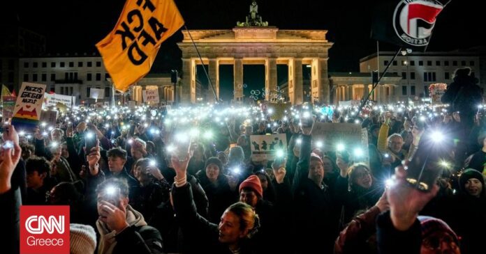 Χιλιάδες κόσμου διαδηλώνουν κατά του ακροδεξιού κόμματος Εναλλακτική για τη Γερμανία (AfD) και του δεξιού εξτρεμισμού μπροστά από την Πύλη του Βρανδεμβούργου στο Βερολίνο