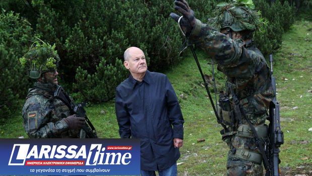 Ο καγκελάριος Σόλτς με στρατιώτες της Ορεινής Ταξιαρχίας της Bundeswehr.