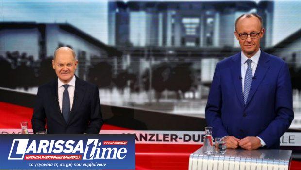 Με ερωτήσεις για τη μετανάστευση, την οικονομία, τους πιθανούς κυβερνητικούς συνασπισμούς της επόμενης μέρας, καθώς και για προσωπικά θέματα κύλησε η — τρίτη εντός 72 ωρών και τελευταία — τηλεοπτική αντιπαράθεση των δύο «μονομάχων» για την ηγεσία της επόμενης κυβέρνησης της Γερμανίας: του καγκελάριου Ολαφ Σολτς (SPD) και του υποψηφίου της Χριστιανικής Ενωσης (CDU/CSU) Φρίντριχ Μερτς, που αναμεταδόθηκε από τις τηλεοπτικές υπηρεσίες των εφημερίδων Die Welt και Bild (στη φωτογραφία του Reuters/Fabrizio Bensch, επάνω, Σολτς, αριστερά, και Μερτς στη διάρκεια της τηλεμαχίας).