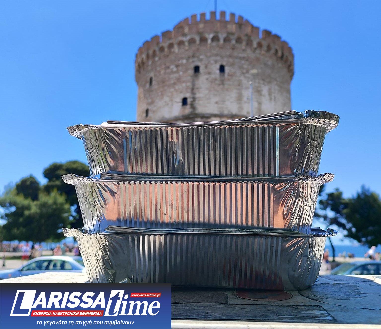 Η διανομή των φαγητών έγινε το μεσημέρι της Κυριακής του Πάσχα απέναντι από τον Λευκό Πύργο.