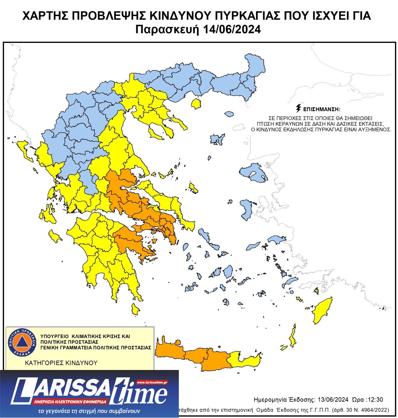 ⚠️ Χάρτης Πρόβλεψης Κινδύνου 🔥 για αύριο Παρασκευή 14/06: