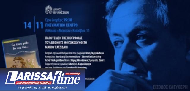 Η βιογραφία του μεγάλου μουσικοσυνθέτη Μάνου Χατζιδάκι δια χειρός του συγγραφέα Κώστα Παπασπήλιου παρουσιάζεται σήμερα Πέμπτη 14 Νοεμβρίου και ώρα 19:30 στην αίθουσα «Μουσών» του Πνευματικού Κέντρου Βριλησσίων στην οδό Κισσάβου 11.