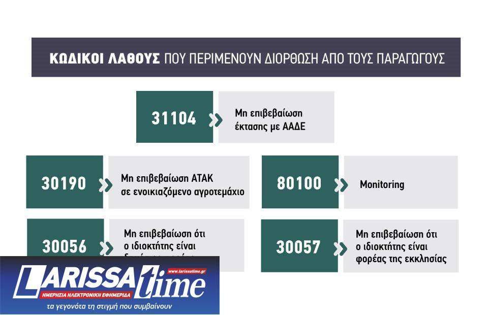 - Εκµισθωτές: Θα πρέπει να αποσαφηνιστεί µε ποιο τρόπο ο δικαιούχος θα αποδείξει ότι ο εκµισθωτής είναι δηµόσιος φορέας ή φορέας της εκκλησίας, µε κωδικούς 30056: Μη επιβεβαίωση ότι ο ιδιοκτήτης του αγροτεµαχίου είναι δηµόσιος φορέας και 30057: Μη επιβεβαίωση ότι ο ιδιοκτήτης του αγροτεµαχίου είναι φορέας της εκκλησίας. Μένει ανοιχτό το αν θα πρέπει να κατατεθούν ενστάσεις µε την προσκόµιση συγκεκριµένων δικαιολογητικών ή βεβαιώσεων από αυτές τις αρχές για την διοικητική έγκριση αυτών των αγροτεµαχίων.