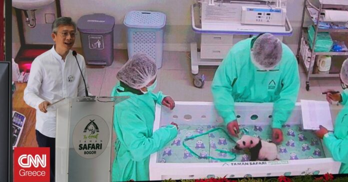 Το μωρό πάντα της Ινδονησίας εξετάζεται από κτηνίατρους