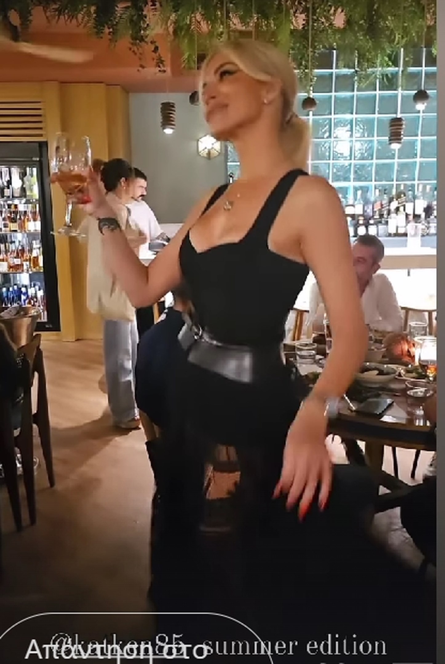 Διασκεδάζοντας στο μαγαζί του συντρόφου της στο Κολωνάκι, η Κατερίνα Καινούργιου μαγνήτισε όλα τα βλέμματα πάνω της. Η παρουσιάστρια διασκέδασε και χόρεψε μαζί με τους συνεργάτες της, φορώντας ένα κομψό μαύρο φόρεμα που εφαρμοζόταν στο πάνω μέρος και είχε διαφάνεια στο κάτω μέρος, αποκαλύπτοντας τα πόδια της. Συνδύασε το φόρεμα με ένα μαύρο σορτσάκι.