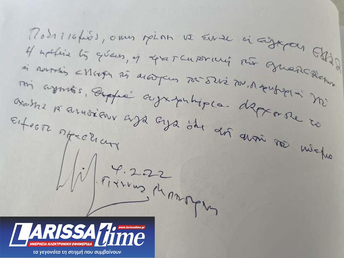 Σημείωμα που είχε γράψει στο αποτεφρωτήριο Ριτσώνας ο Γιάννης Μπουτάρης