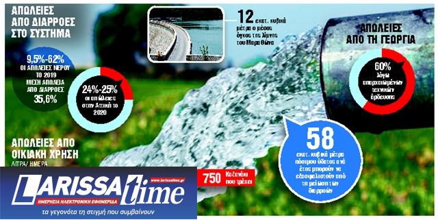 Σύμφωνα με την Ελισσάβετ Φελώνη, καθηγήτρια Υδρολογίας στο Πανεπιστήμιο Δυτικής Αττικής, «στα δίκτυα διανομής οι διαρροές ξεπερνούν το 20%. Μέσα στο κλειστό δίκτυο της πρωτεύουσας οι απώλειες αγγίζουν το 23%, λόγω της παλαιότητάς του – η μέση ηλικία του είναι τα 60 έτη». Στην πρόσφατη παρουσίαση των παρεμβάσεων για την αντιμετώπιση της λειψυδρίας από το υπουργείο Περιβάλλοντος και Ενέργειας επισημάνθηκε ότι το 2019, κατά δήλωση των ΔΕΥΑ (Δημοτικών Επιχειρήσεων Υδρευσης και Αποχέτευσης), το ποσοστό απώλειας νερού από διαρροές κυμαινόταν μεταξύ 9,5% και 62%, με τη μέση τιμή να ανέρχεται σε 35,6%. Σε χθεσινή συνέντευξή του (ΣΚΑΪ), ο αρμόδιος υπουργός Θεόδωρος Σκυλακάκης ανέφερε πως περί το 40%-50% του νερού χάνεται από διαρροές στα δίκτυα, ενώ συμπλήρωσε: «Πλέον όλοι οι πάροχοι νερού θα περνούν την οποιαδήποτε αύξηση από έλεγχο μέσω της Ρυθμιστικής Αρχής Υδάτων, που μέχρι τέλος του μήνα μπαίνει σε πλήρη λειτουργία. Ο έλεγχος βασίζεται στην ευρωπαϊκή οδηγία που δεν σου λέει τίποτα άλλο πέραν του ότι οφείλεις να έχεις ρύθμιση κόστους, χωρίς κέρδος στο νερό».
