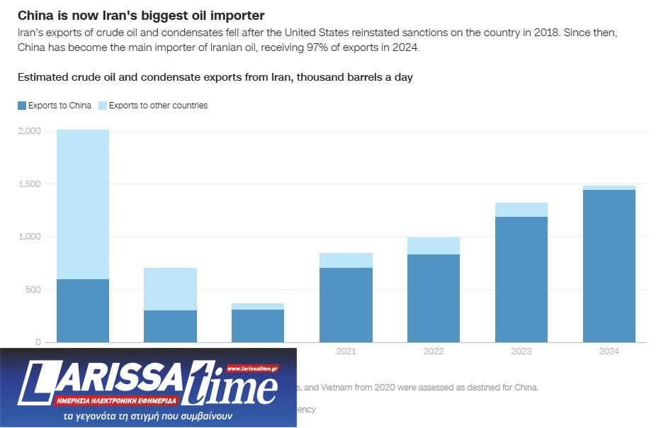 Η Κίνα είναι μακράν ο μεγαλύτερος αγοραστής ιρανικού πετρελαίου, απορροφώντας το 97% των εξαγωγών το 2024.