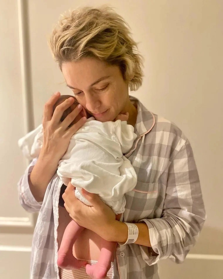 Το πρωί της Πέμπτης 9 Μαΐου η ηθοποιός δημοσίευσε στον προσωπικό της λογαριασμό στο Instagram μια φωτογραφία μέσα από ιδιωτικό μαιευτήριο των Βορείων προαστίων, στην οποία απεικονίζεται το χέρι της με το ειδικό βραχιολάκι και έτσι ανακοίνωσε τα ευχάριστα νέα.