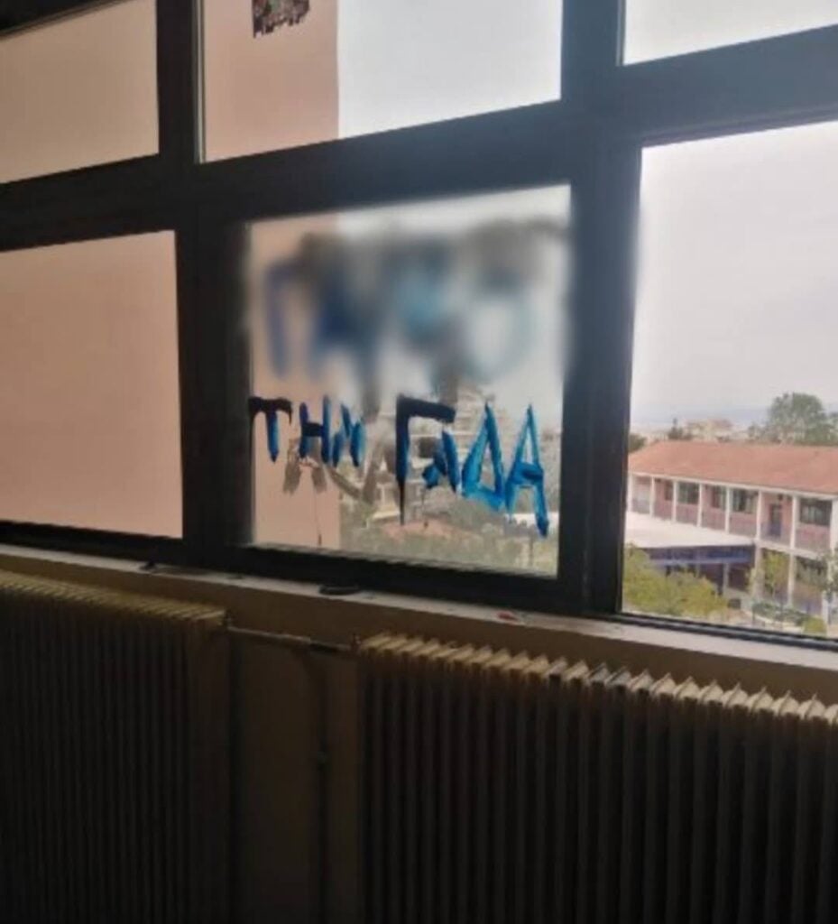 Οι εικόνες που βλέπετε είναι από τους εισβολείς στο 5ο Γυμνάσιο – Λύκειο Γλυφάδας, οι οποίοι έσπασαν πόρτες, διέλυσαν γραφεία προκάλεσαν εκτεταμένες καταστροφές, έκλεψαν ηλεκτρονικούς υπολογιστές, έγραψαν συνθήματα στους τοίχους και άδειασαν πυροσβεστήρες παντού σε όλο το κτίριο…