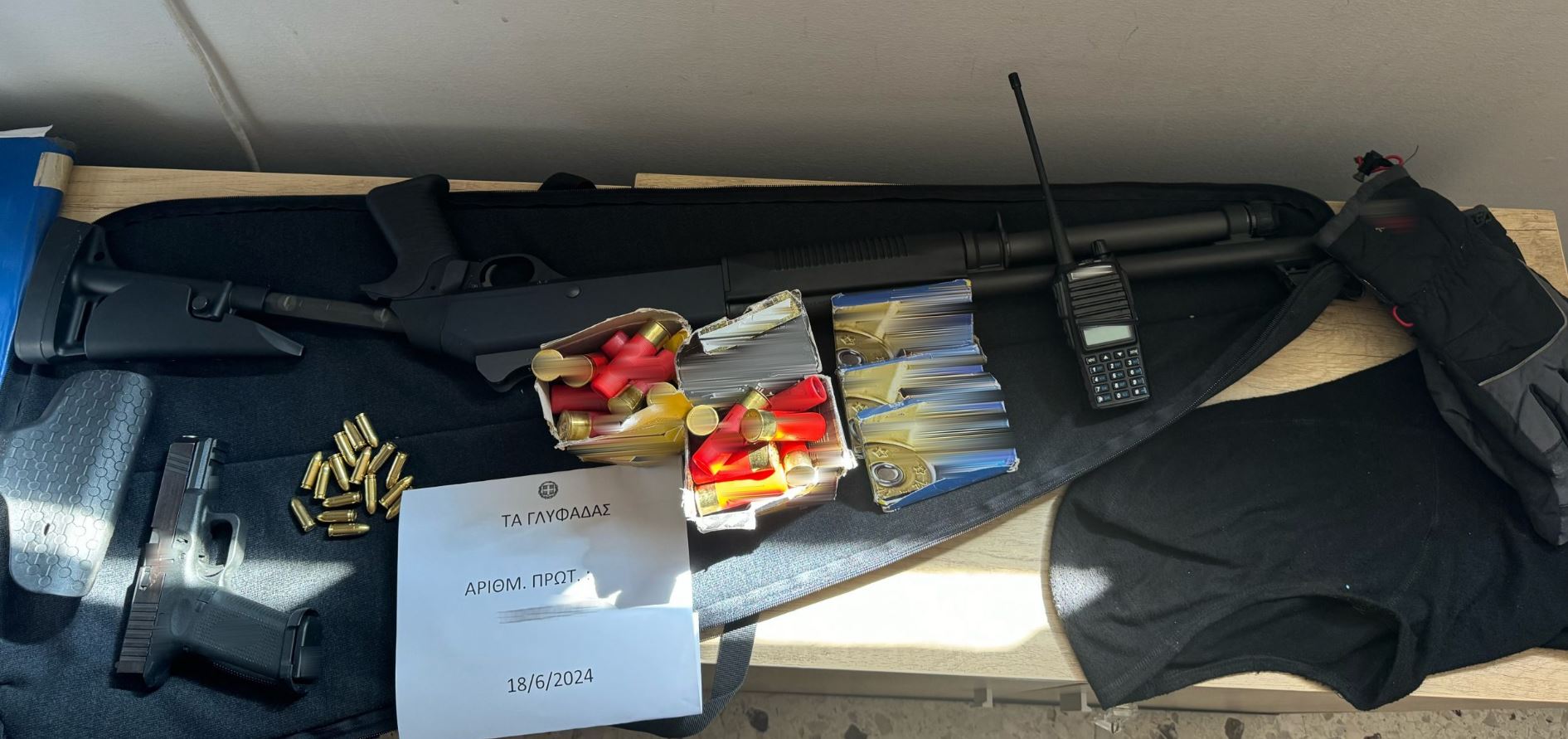 Συγκεκριμένα, περιπολούντες αστυνομικοί της ΟΠΚΕ εντόπισαν και έκριναν ύποπτο ένα αυτοκίνητο, μάρκας BMWX5 μαύρου χρώματος, το οποίο οδηγούσε ο 33χρονος και σε αστυνομικό έλεγχο που διενήργησαν, βρέθηκαν στο χώρο των αποσκευών, 1 καραμπίνα, μάρκας «benelli μοντέλο MA S90, διαμετρήματος 12GA, την οποία κατέχει νόμιμα, 55 φυσίγγια των 12 cal, μία 1 κουκούλα τύπου «FULL FACE», 1 ζεύγος γάντια μηχανής και 1 ασύρματος μάρκας «BAOFENG».
