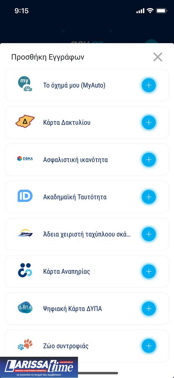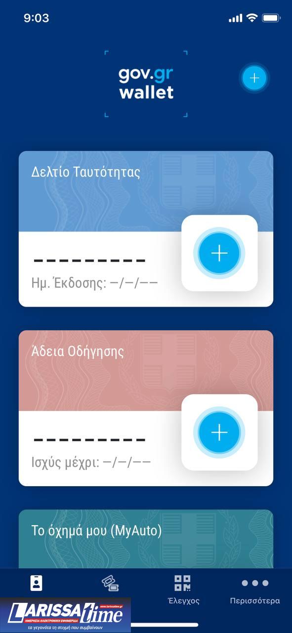 Ας υποθέσουμε ότι έχετε εγκαταστήσει στο κινητό σας την εφαρμογή gov.gr Wallet. Μόλις μπείτε επάνω δεξιά υπάρχει το σύμβολο «+».
