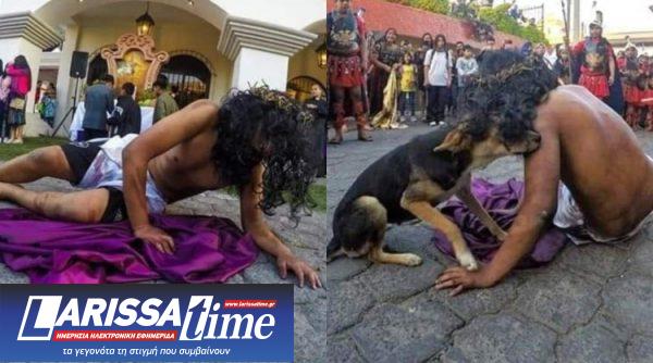 Η συγκινητική στιγμή αποτυπώθηκε σε μια σειρά φωτογραφιών που έχουν κατακλύσει το διαδίκτυο με σχόλια γεμάτα ελπίδα και αλληλεγγύη και φυσικά αγάπη για τα ζώα. Στις εικόνες που βλέπετε ο ηθοποιός φαίνεται πεσμένος στο έδαφος, ντυμένος με λευκό χιτώνα και ακάνθινο στεφάνι, αφού μαστιγώθηκε στην αναπαράσταση της «ανάβασης του Γολγοθά του Ιησού».