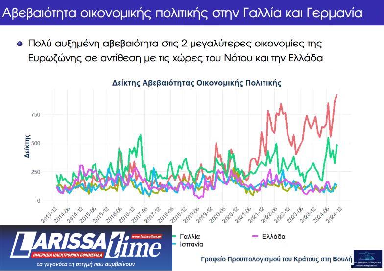 – Η προαναφερθείσα εκτίμηση του Γραφείου για τον ρυθμό μεγέθυνσης της Ελληνικής οικονομίας για το 2025 βασίζεται στην πρόβλεψη για ρυθμό αύξησης των συνολικών επενδύσεων στο 7,9%. Η διεθνής βιβλιογραφία συμπεραίνει ότι λιγότερη αβεβαιότητα (μεγαλύτερη σταθερότητα) έχει θετικές επιπτώσεις στις επενδύσεις και την ανάπτυξη, και μειωτικές στο επενδυτικό κενό.