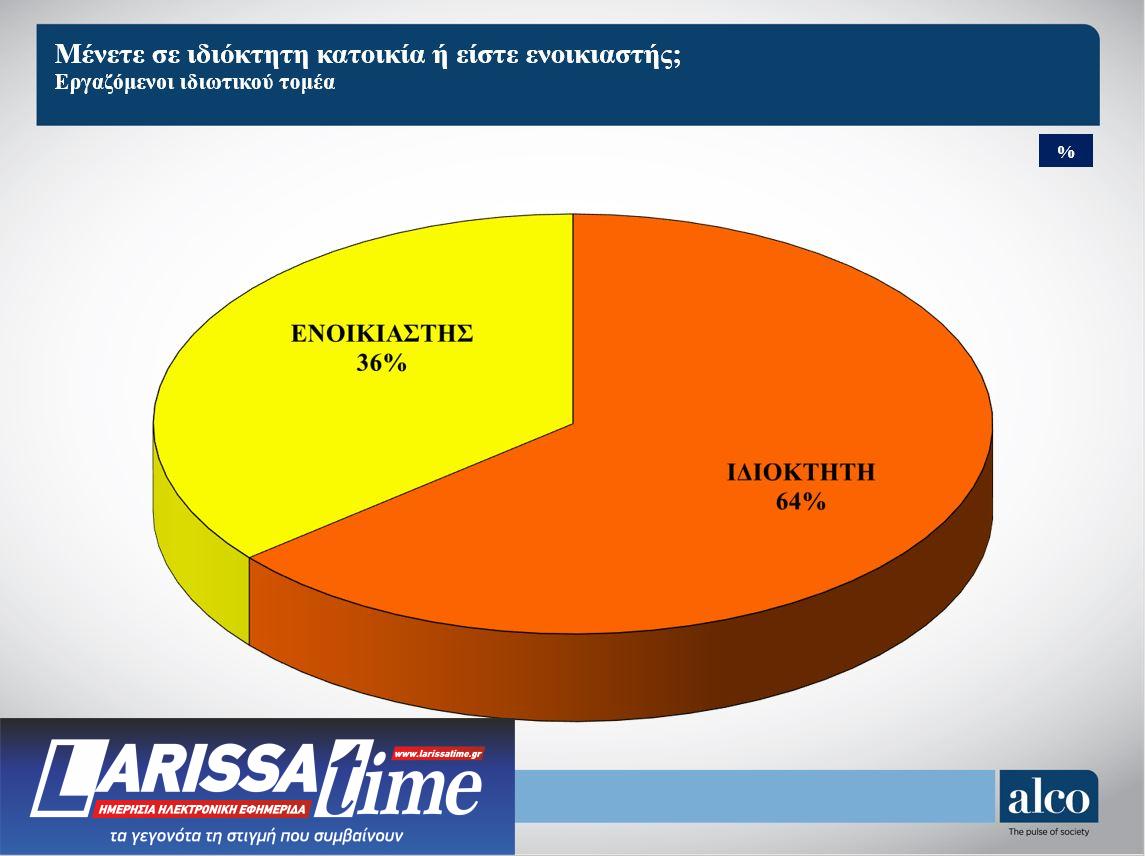 Ένα εξαιρετικά ενδιαφέρον εύρημα είναι ότι σχεδόν οι τέσσερις στους δέκα εργαζόμενους του ιδιωτικού τομέα (36%) είναι ενοικιαστές. Το 64% διαμένει σε ιδιόκτητη κατοικία.