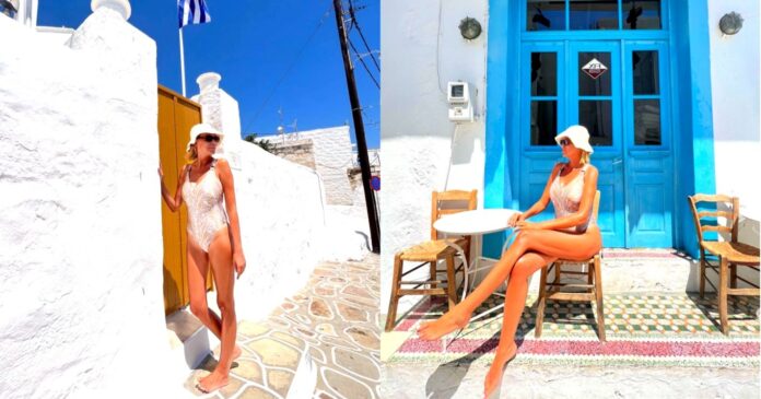 Η ίδια, κατά την παραμονή της στο νησί μοιράστηκε πολλές φωτογραφίες με τους διαδικτυακούς της φίλους, ενώ στην τελευταία της ανάρτηση, την βλέπουμε να ποζάρει με το μαγιό της στα πανέμορφα σοκάκια του νησιού.