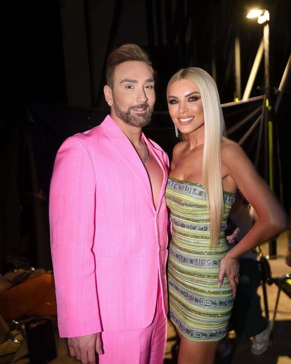 Ο Νίκος Κοκλώνης ήταν επίσης παρών και παρέδωσε ένα βραβείο. Δίπλα του βρισκόταν η εκθαμβωτική Κατερίνα Καινούργιου, η οποία έκλεψε τις εντυπώσεις με την εμφάνισή της. Η παρουσιάστρια της εκπομπής «Super Κατερίνα» επέλεξε, με τη βοήθεια της στιλίστριας Γεωργίας Παντελέ, ένα αστραφτερό μίνι φόρεμα σε φωτεινό πράσινο χρώμα.