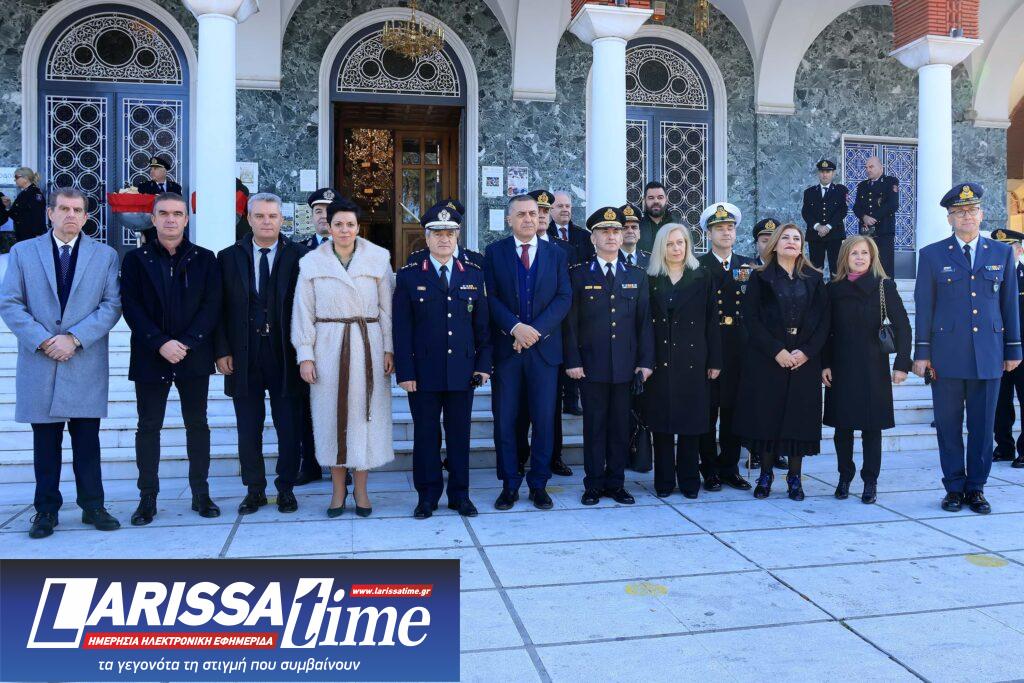 Αρχικά παρέστη στη δοξολογία που τελεσθηκε στον Μητροπολιτικό Ναό του Αγίου Αχιλλίου Λάρισας, χοροστατούντος του Σεβασμιότατου Μητροπολίτου Λαρίσης και Τυρνάβου κ.κ. Ιερώνυμου, παρουσία πολιτικών και στρατιωτικών Αρχών της πόλης, ενώ με την ολοκλήρωσή της έγινε ανάγνωση της Ημερήσιας Διαταγής Αρχηγού του Πυροσβεστικού Σώματος, Θ. Βάγια.