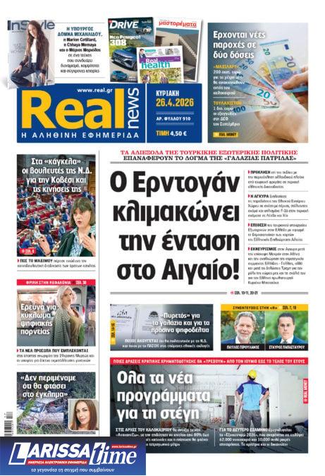 Με τίτλο: «Ο Ερντογάν κλιμακώνει την ένταση στο Αιγαίο!» κυκλοφορεί, αυτήν την Κυριακή, η Realnews. Τα αδιέξοδα της τουρκικής εξωτερικής πολιτικής επαναφέρουν το δόγμα της «Γαλάζιας Πατρίδας».