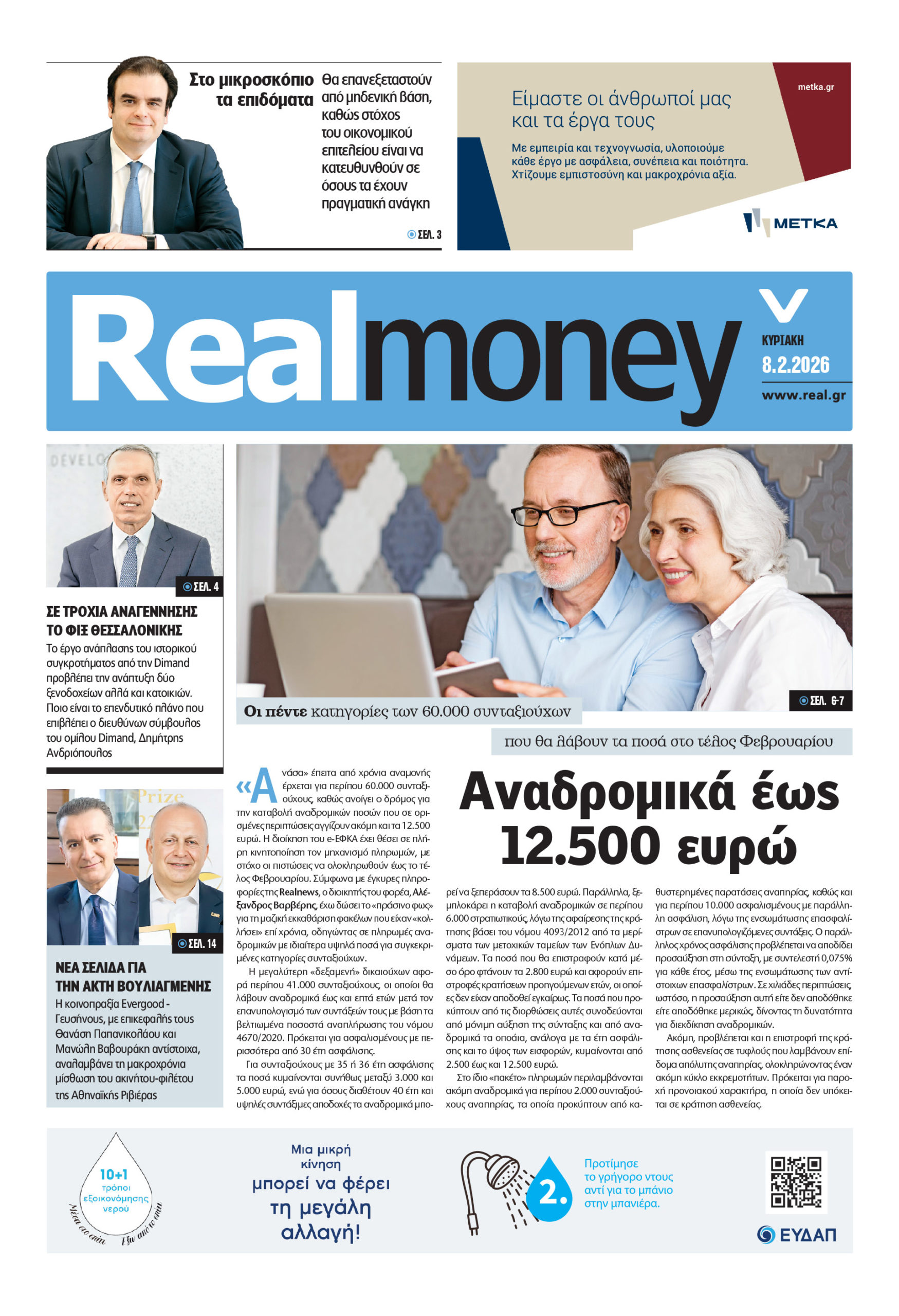 – Αναδρομικά έως 12.500 ευρώ σε 60.000 συνταξιούχους. Οι πέντε κατηγορίες των δικαιούχων που θα λάβουν τα ποσά στο τέλος Φεβρουαρίου. Πρόκειται για ασφαλισμένους στα πρώην ταμεία ΙΚΑ, ΤΣΜΕΔΕ, ΤΣΑΥ και ΟΑΕΕ. Με τον επανυπολογισμό της σύνταξης θα πιστωθούν σε 41.000 πρώην εργαζομένους αναδρομικά ποσά έως και επτά ετών!